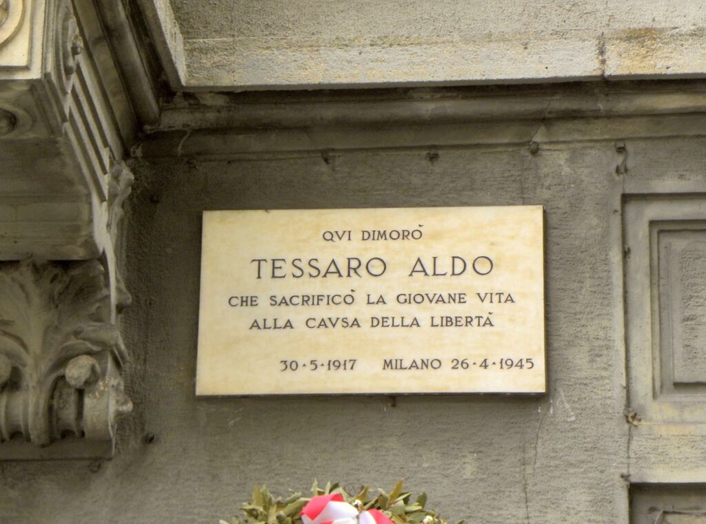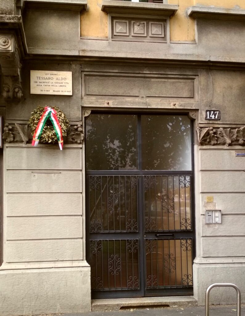 A lato del portone di ingresso di viale Certosa 147, a Milano, una lastra commemorativa ricorda il partigiano Aldo Tessaro.