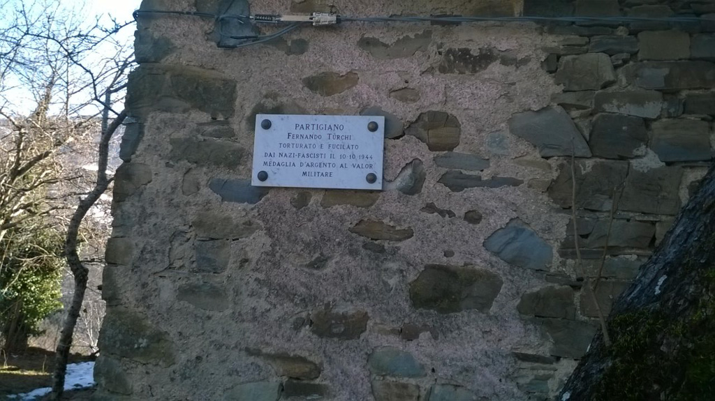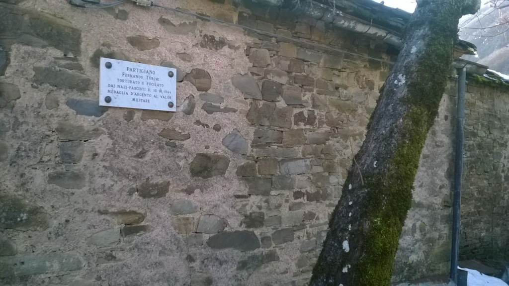 “Partigiano Fernando Turchi torturato e fucilato dai nazi-fascisti il 10.10.1944. Medaglia d’argento al valor militare.”