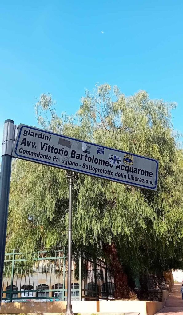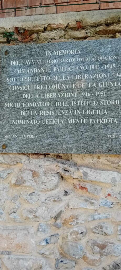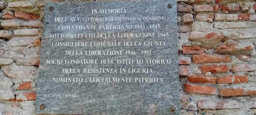 - La lastra in onore di Vittorio Bartolomeo Acquarone viene posta nel 2008, in aprile, per volontà della famiglia del partigiano. Inspiegabilmente nel luglio 2016 viene distrutta, forse per un atto meramente vandalico, forse per rivendicazioni ideologiche. Le indagini non hanno portato a nessuna certezza. Nel 2018 l'Anpi di Imperia, unitamente alla famiglia e all'amministrazione comunale, hanno fortemente voluto il riposizionamento della lapide per onorare la memoria di una figura storica tra i partigiani di Imperia.