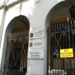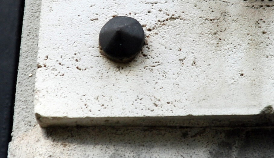 - Lastra in marmo; stemma della Repubblica, chiodi per il fissaggio e scritte in rilievo in bronzo
