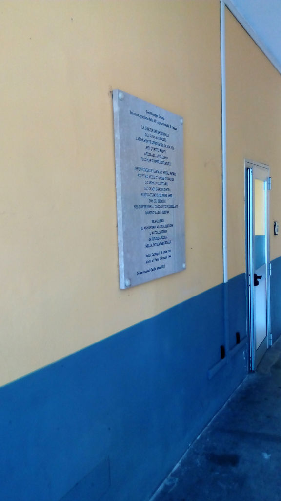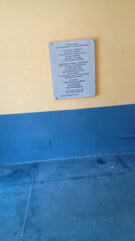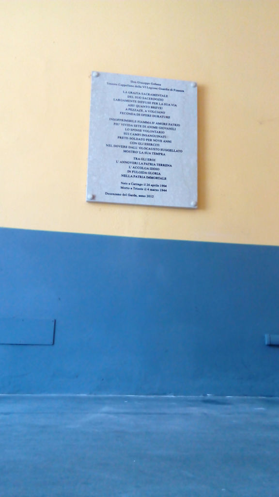 Lastra commemorativa a ricordo del Tenente Cappellano Militare della VI Legione della Guardia di Finanza, don Giuseppe Gabana, deceduto nel corso del secondo conflitto mondiale a Trieste.