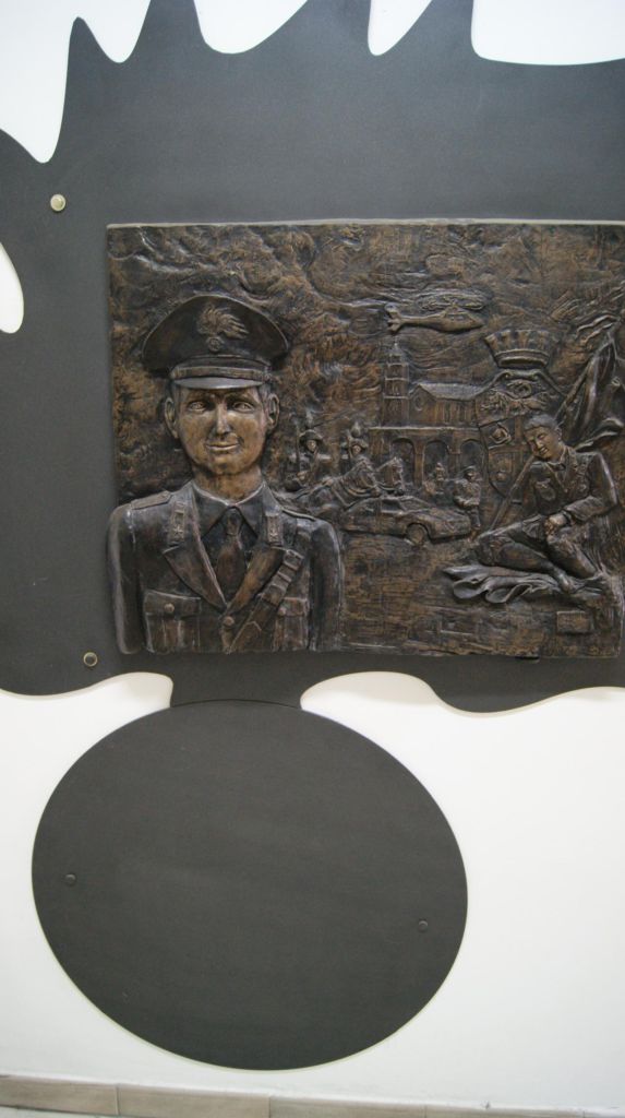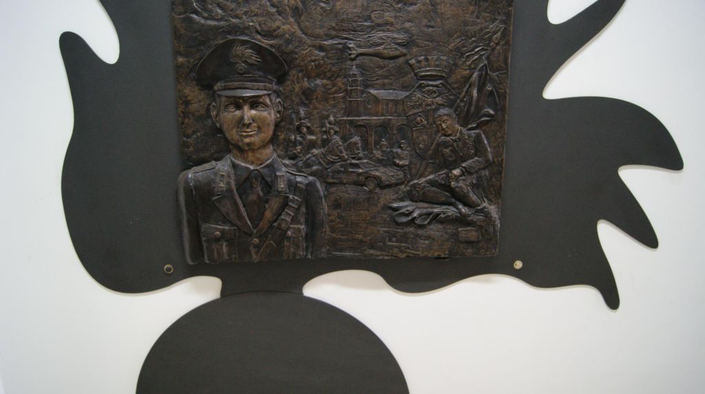 - All'interno della Stazione Carabinieri di Montecorvino Rovella, sulla parete sinistra - per chi ha ingresso agli uffici - appena dopo l'androne della sala d'aspetto.