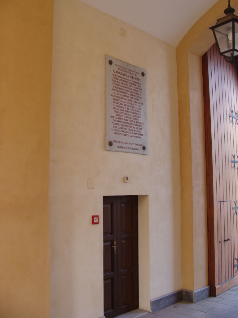 - atrio ingresso principale Caserma "S.Ten. M.O.V.M. Giuseppe Cangialosi", a circa 3 metri di altezza dal suolo