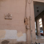 - Lastra di travertino con supporti di ferro zincato e lettere di bronzo a carattere “romano”.