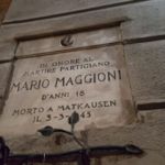 - Lastra commemorativa ad un meccanico antifascista arrestato il 24 agosto 1944 e internato in diversi campi di concentramento tra i quali per ultimo Mathausen, qui erroneamente trascritto Matkausen, dove morì il 3 marzo 1945 a meno di due mesi dalla liberazione a neanche 18 anni.