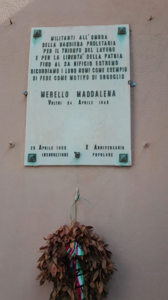 La lastra, posizionata nel decimo anniversario della Liberazione, ricorda il sacrifico estremo di Maddalena Merello.