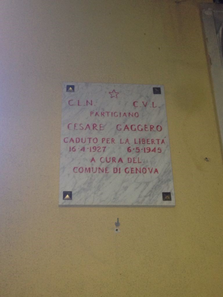 La lastra ricorda la figura del partigiano Cesare Gaggero.
