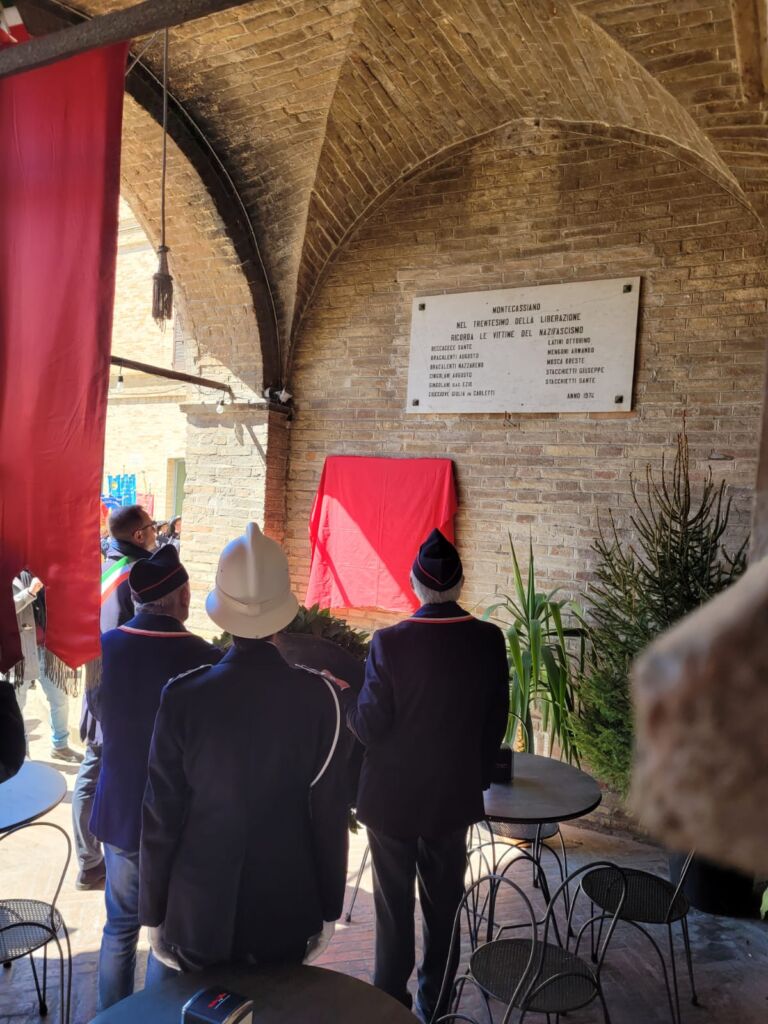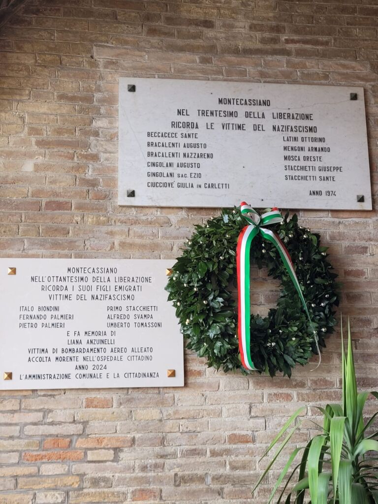 - La lastra richiama, anche nel testo, l'omologa collocata nel 1974 in occasione del 30° anniversario della Liberazione, affissa nella stessa parete in ricordo delle vittime montecassianesi del nazifascismo.