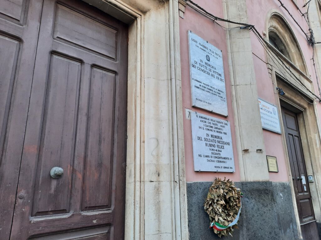 - La lastra commemorativa intende ricordare Felice Rubino, l’unico soldato nicosiano morto in un capo di concentramento nazista. E’ stata collocata dal Comune di Nicosia il 27/01/2016 in occasione della Giornata della Memoria.