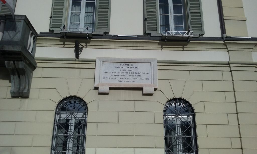 La lastra commemorativa della Liberazione si trova sulla facciata del Municipio di Tirano. Essa è di forma rettangolare ed è realizzata in marmo.