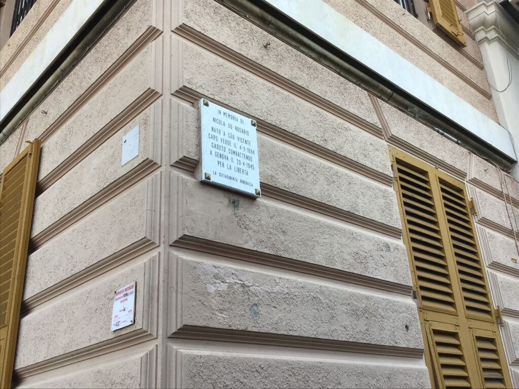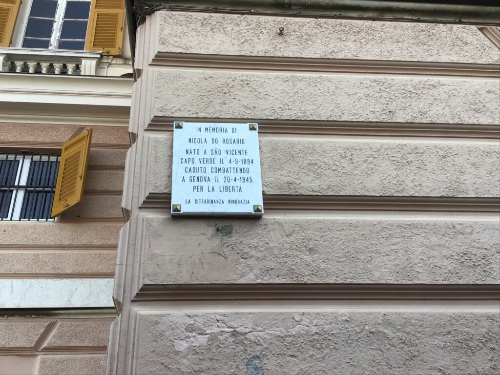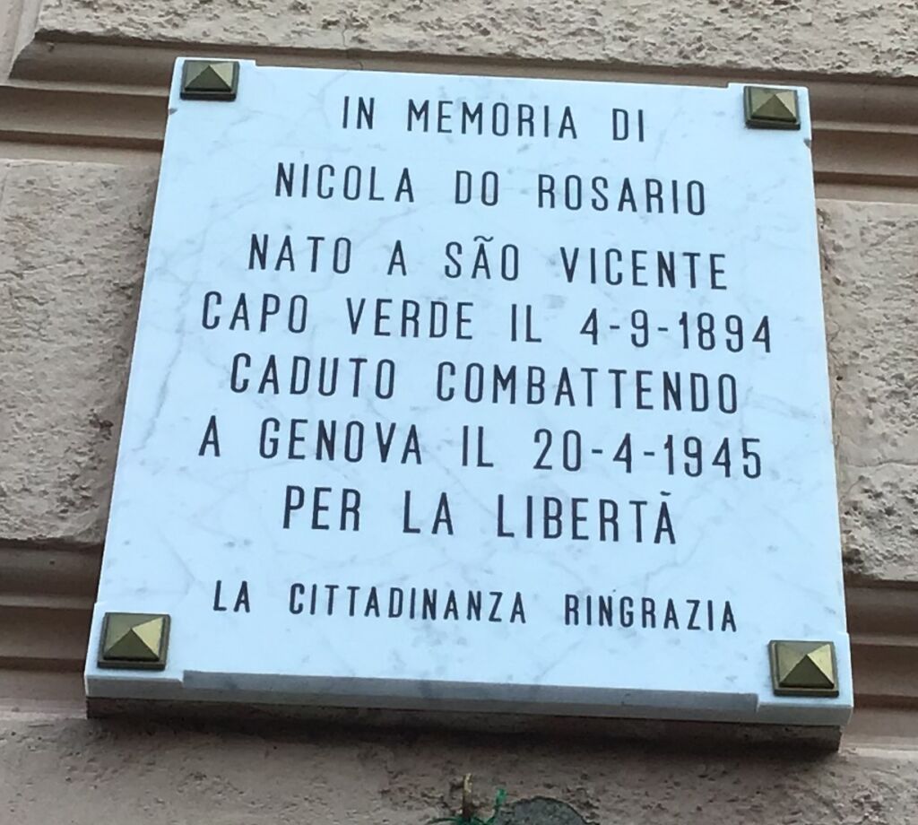 - "... entrando nel monumentale cimitero genovese di Staglieno, uno dei più importanti d’Europa assieme al cimitero monumentale di Messina, accanto a nomi illustri come Giuseppe Mazzini, nell’area dedicata ai caduti della patria, troviamo la tomba di Nicolau do Rosário, un capoverdiano, nato il 4 settembre 1894 a São Vicente, nelle isole africane di Cabo Verde, e caduto a Genova il 24 aprile 1945 in un combattimento contro i nazifascisti. Nicolau faceva parte della 863ª Brigata Garibaldi “Bellucci “ (o Caio) e fu ucciso da una raffica di mitra nei pressi dell’ospedale Galliera ove, ancora oggi, esiste una piccola targa a ricordarlo. Più di settant’anni dopo la sua morte, quella targa, già quasi illeggibile, venne rinnovata nell’aprile 2016 dall’Ambasciata di Cabo Verde in Italia.