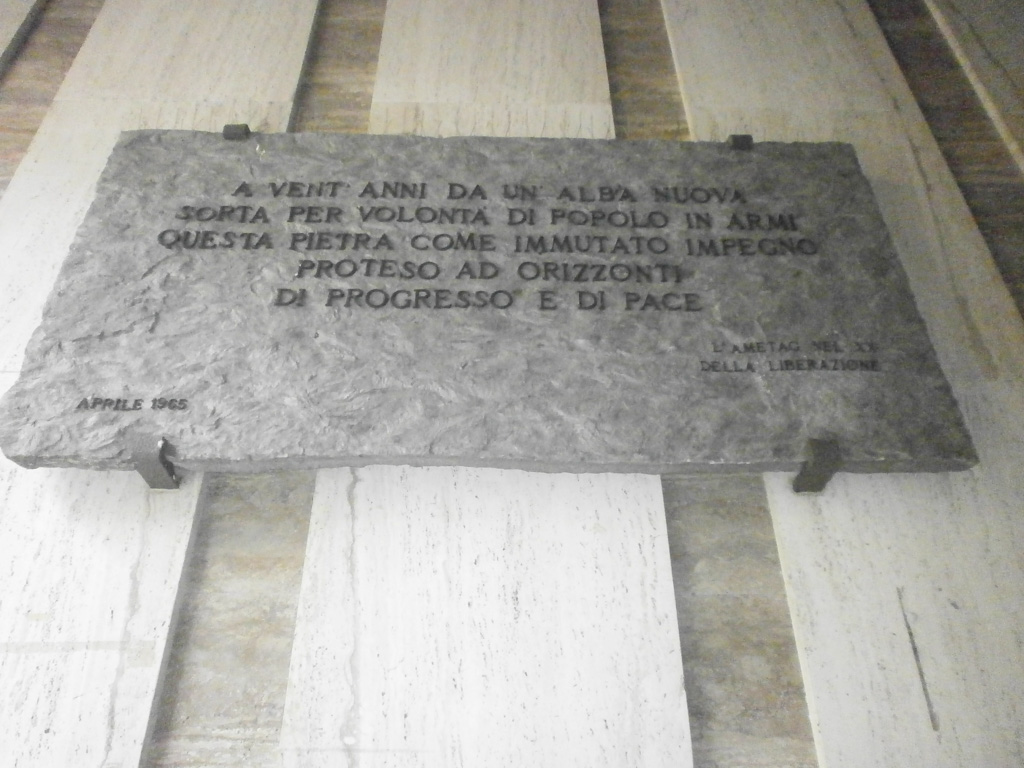 - Il ventesimo anniversario della Liberazione dal nazifascismo fu occasione per enti e istituzioni per celebrare e ricordare i sacrifici umani per giungere alla pace e alla libertà con l'inaugurazione di numerose lapidi commemorative.