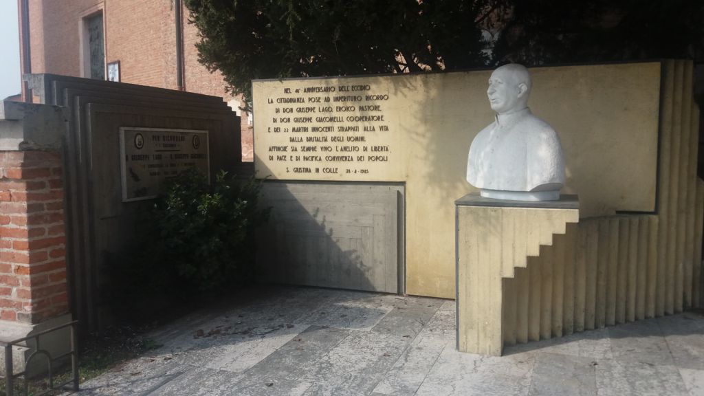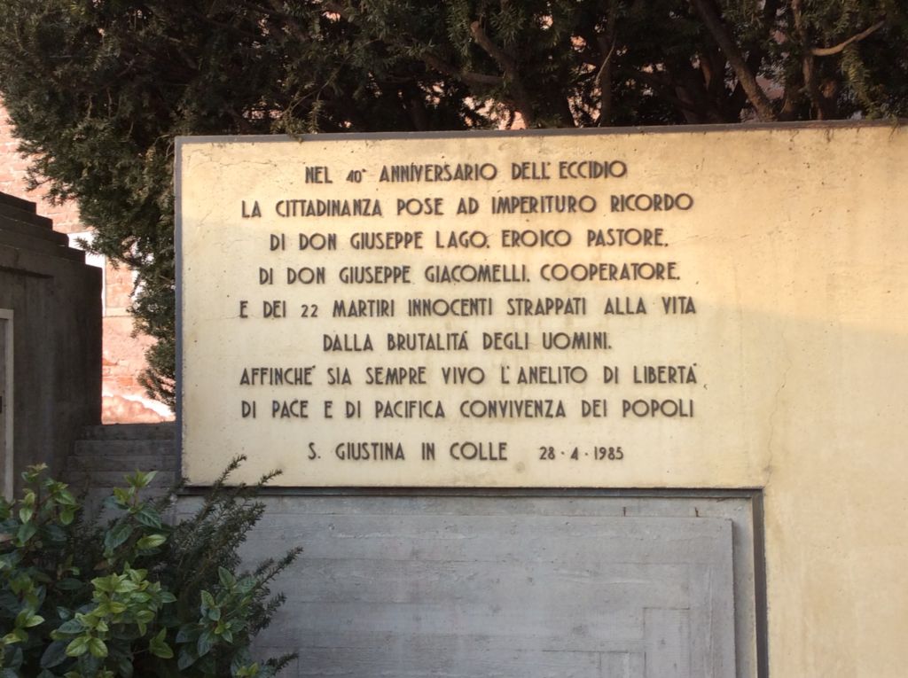 Tra gli ostaggi ne vennero scelti una ventina: furono condotti sotto la spianata vicino al campanile, dove oggi sorge il muro, e furono uccisi con una rivoltellata alla testa. Poco dopo anche il parroco don Lago e il cappellano don Giacomelli vennero trucidati barbaramente. La loro morte lasciò un profondo segno nella comunità, tanto che oggi ci son ben tre Pietre della Memoria che ricordano l'evento, proprio dove avvenne