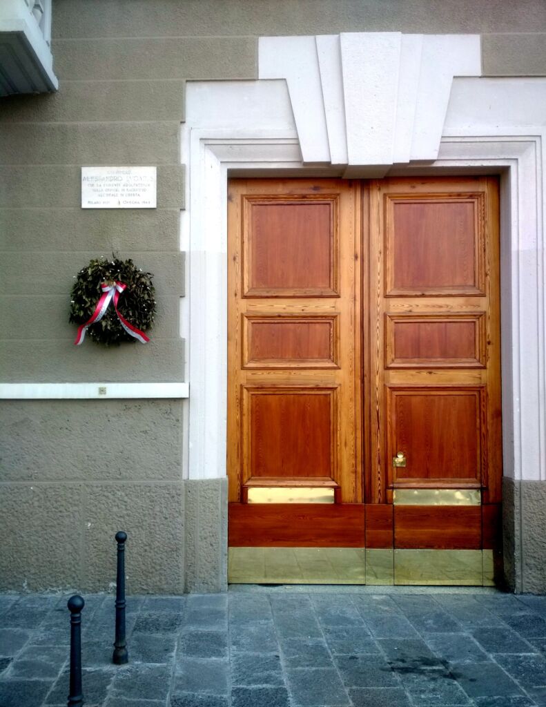 - A sinistra del portone di ingresso del palazzo dove Alessandro abitò.