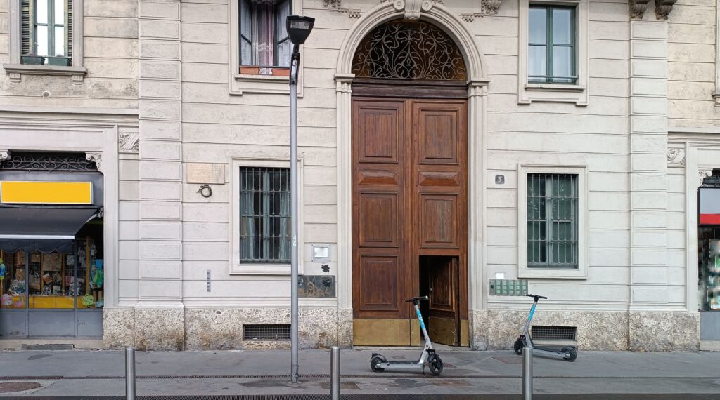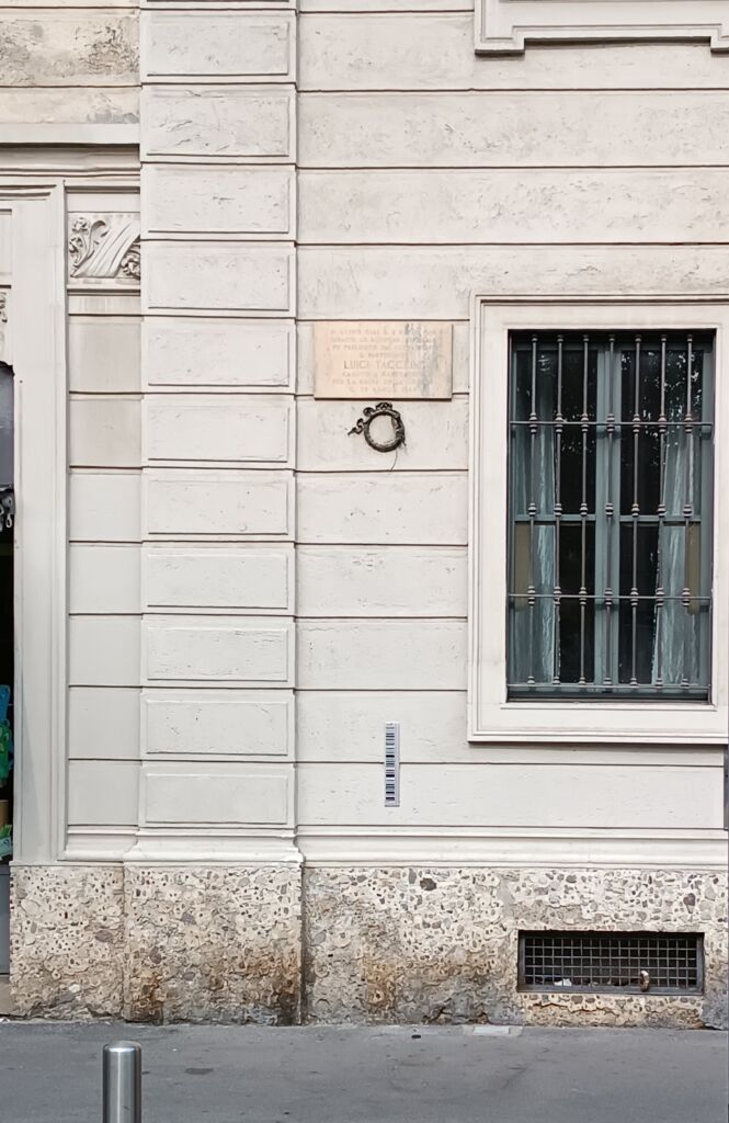 - A sinistra del portone di ingresso circa 4 metri dal suolo, del numero civico 5 dove Luigi abitò.