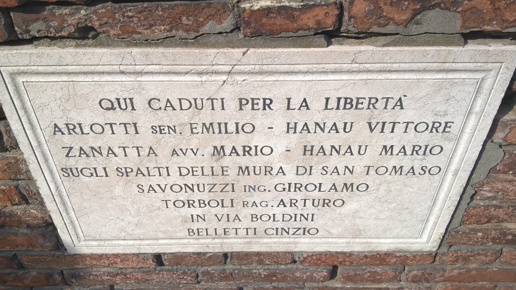 - La lapide è stata posta per ricordare le persone che nella “lunga notte del '43” furono fucilate dalle "brigate nere" durante una rappresaglia avvenuta dopo il ritrovamento del federale fascista Ghisellini, ucciso mentre tornava alla sua abitazione a Casumaro di Cento.