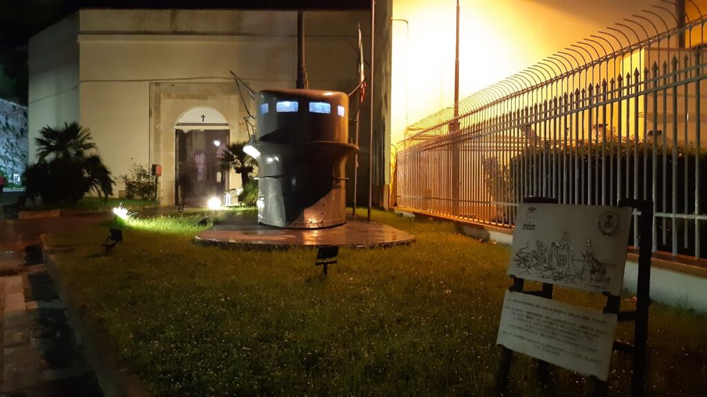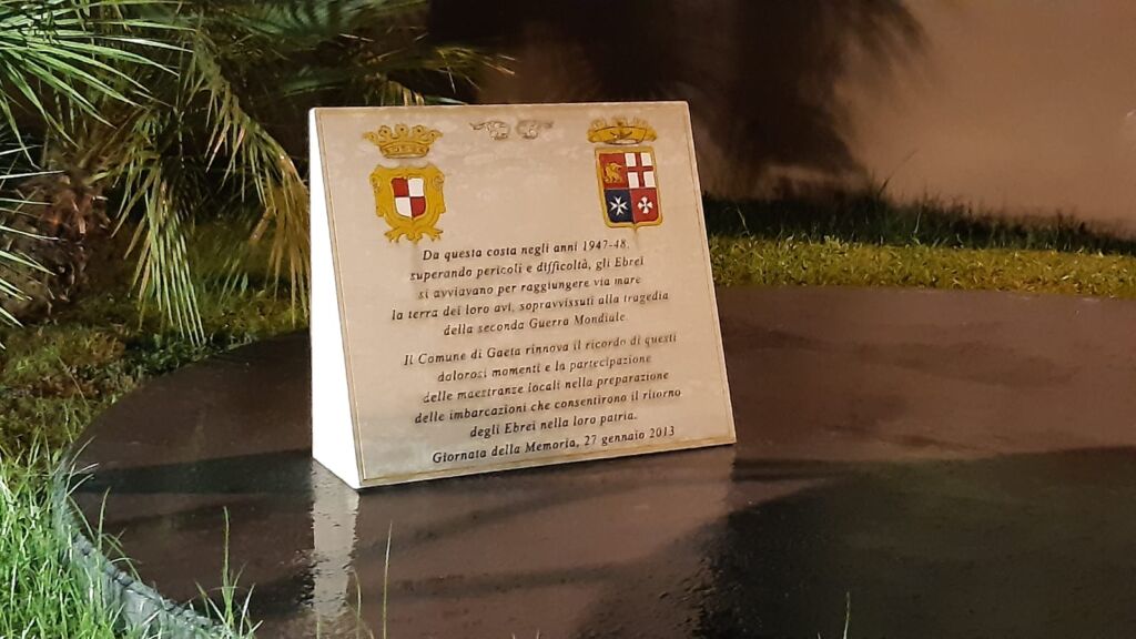 - Nella lastra superiore, sono presenti gli stemmi dei Comuni di Gaeta e Salerno.