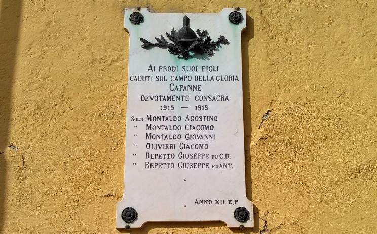 Lastre rappresentanti i nomi dei partigiani nella prima guerra mondiale (prima lastra) e nella seconda guerra mondiale (seconda lastra). Le lastre marmoree, di forma rettangolare, riportano una lista di 9 caduti totali.