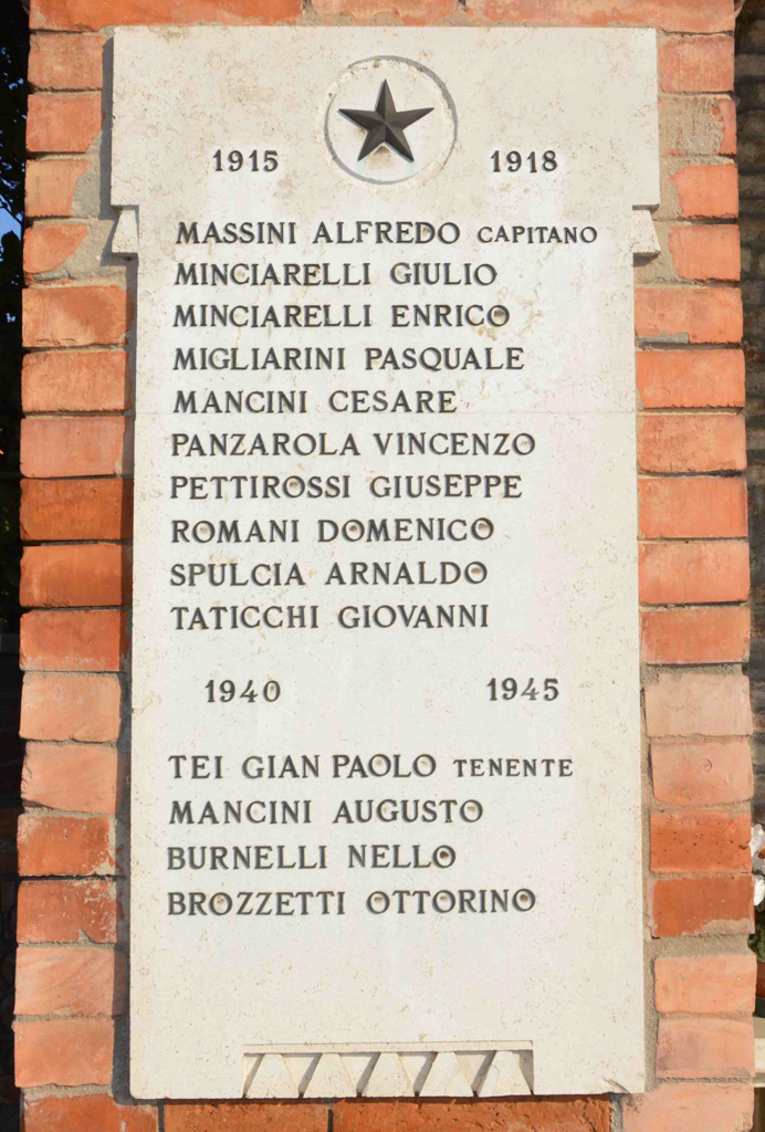 MASSINI ALFREDO capitano, MINCIARELLI GIULIO, MINCIARELLI ENRICO, MIGLIARINI PASQUALE, MANCINI CESARE, PANZAROLA VINCENZO, PETTIROSSI GIUSEPPE, ROMANI DOMENICO, SPULCIA ARNALDO, TATICCHI GIOVANNI