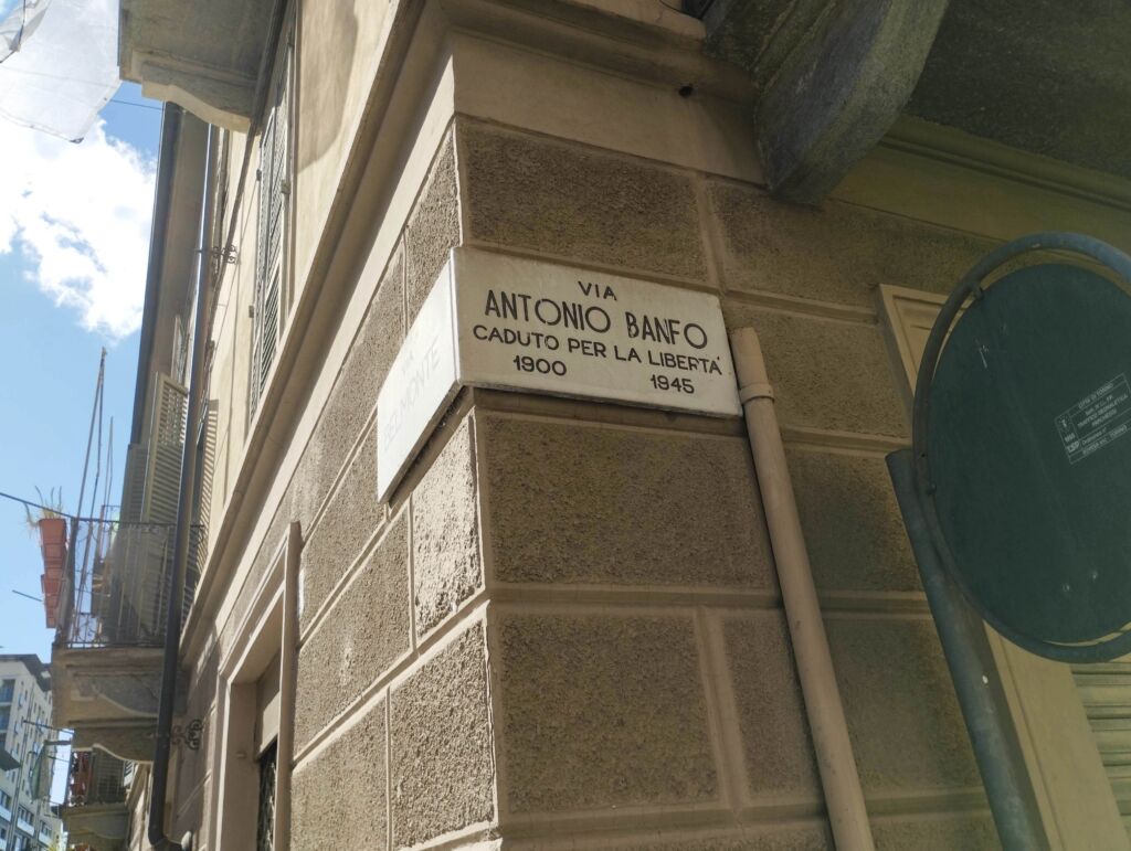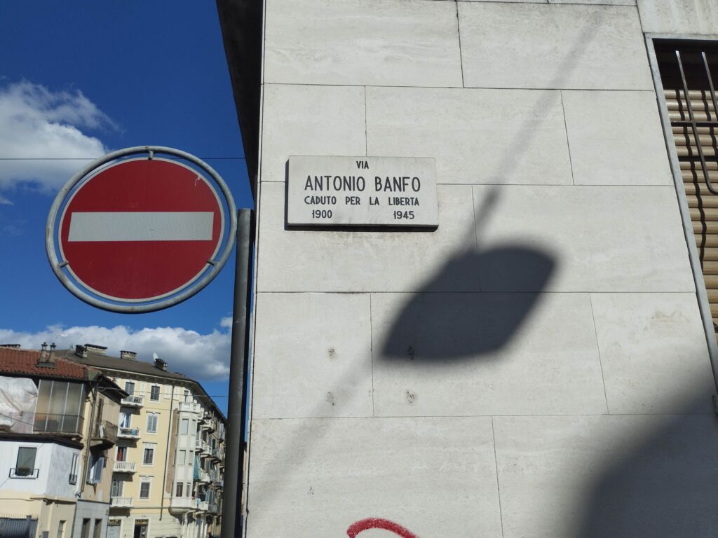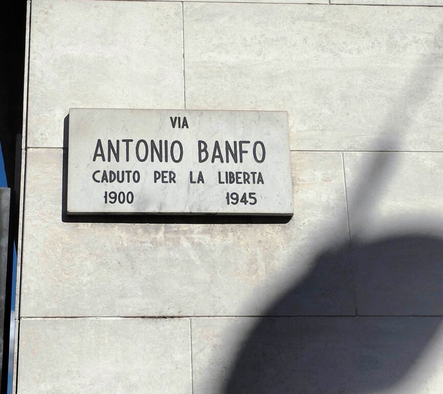 - Antonio Banfo nacque a Torino il 23 febbraio 1900. Operaio alla Fiat Grandi Motori, aderì nel 1921 al Partito Comunista appena fondato e ne divenne propagandista clandestino. Nel 1931 il Tribunale speciale fascista lo condannò a tre anni di reclusione per attività sovversiva ma fu scarcerato nel 1932, per un’amnistia concessa in occasione del decennale del regime fascista. Nel 1936 si convertì alla Chiesa Evangelica coniugando l’impegno religioso con la militanza politica. Nel marzo del 1943 fu tra gli organizzatori degli scioperi contro la guerra. Dopo l’armistizio dell’8 settembre 1943 entrò nella Resistenza e fu inquadrato nella 23° Brigata Garibaldi, assumendone un ruolo di primo piano. Il 18 aprile 1945 diresse lo sciopero preinsurrezionale in FIAT. La notte stessa squadre fasciste lo prelevarono dalla sua abitazione di via Scarlatti 4 insieme al genero Salvatore Melis (nato in provincia di Nuoro nel 1917, operaio della Fiat Grandi Motori e sappista). Al mattino i loro cadaveri trucidati furono ritrovati all’angolo tra corso Novara e corso Giulio Cesare. I resti di Banfo e Melis riposano nel Campo della Gloria, Sacrario della Resistenza, nel Cimitero Monumentale di Torino. Dopo la Liberazione, la Città di Torino gli dedicò una strada (già denominata "Via Monte Bianco") in Borgata Monte Bianco e ne ricordò il sacrificio con una lapide posta in corso Novara 20/C.