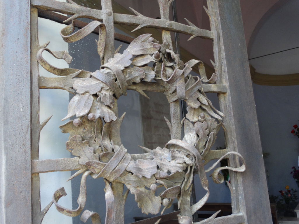 - Nessun simbolo nelle lastre marmoree, i simboli religiosi nell'arredo della Chiesolina; in cancello in ferro all'ingresso reca due corone d'alloro in ferro.