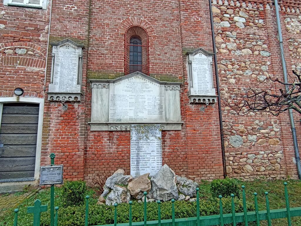 La lapide centrale riporta i nominativi dei parrocchiani che hanno contribuito economicamente alla costruzione del santuario e pertanto non sono stati censiti.