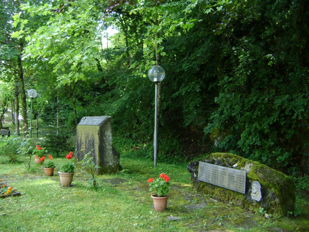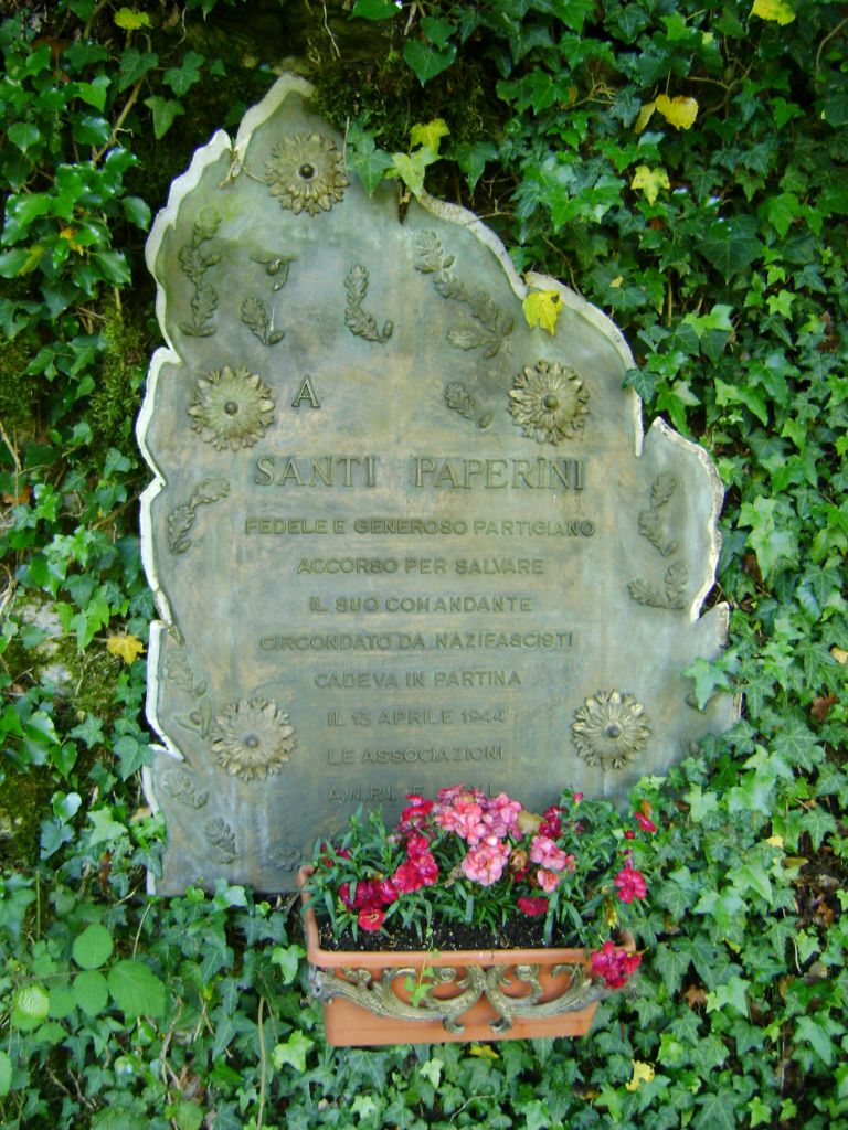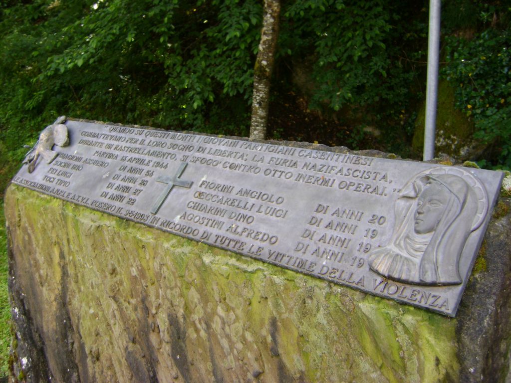 - Croce cristiana sulla lapide dedicata agli operai della “Todt” fucilati il 13 Aprile 1944. Stemma del Comune di Bibbiena sulla targa dedicata ai committenti dell'area monumentale.