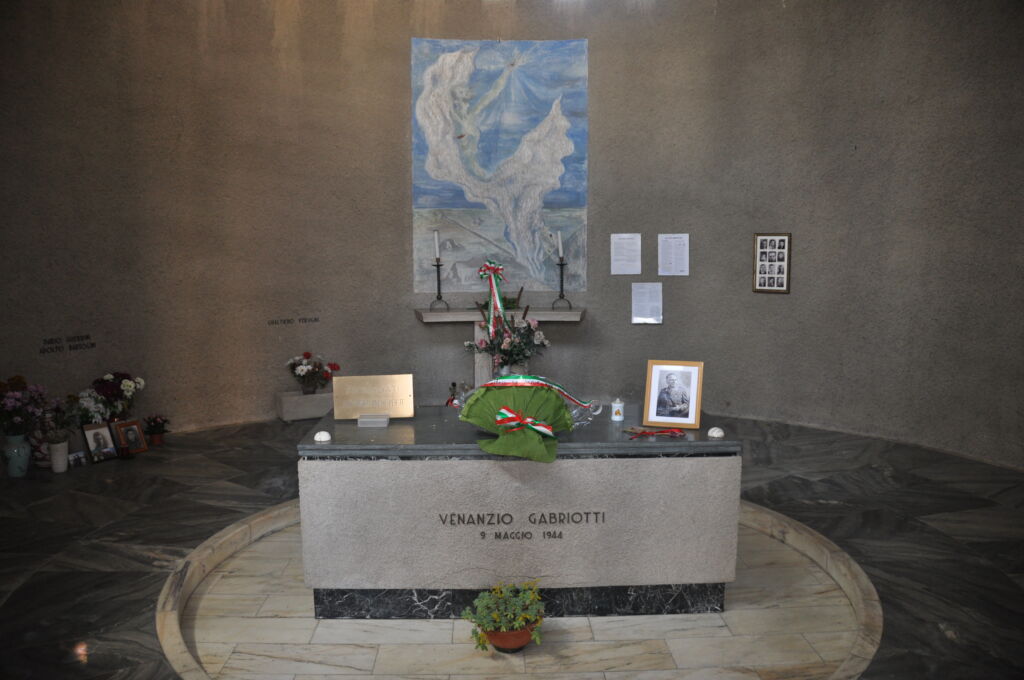 All’interno del Cimitero Monumentale, sul lato destro del Famedio, da un cancellata si accede al Memoriale ai Volontari della Libertà caduti sotto il piombo nazifascista. Una cappella circolare con al centro la tomba sarcofago di Venanzio Gabriotti, sul fondo un piccolo altare e ai lati in cerchio le tombe con nomi e foto dei compagni della “Brigata d’urto San Faustino” che dettero la vita per la Libertà di tutti noi.
