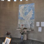 Sulla parete sopra l’altare un affresco raffigurante la Resurrezione, opera di Aldo Riguccini.