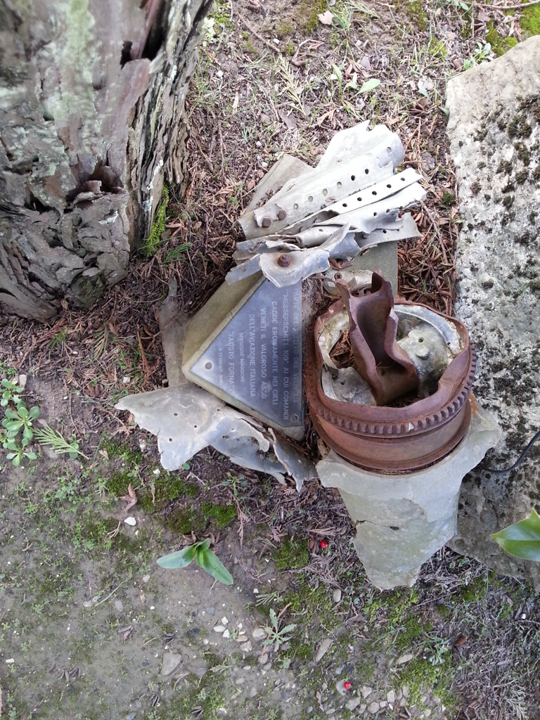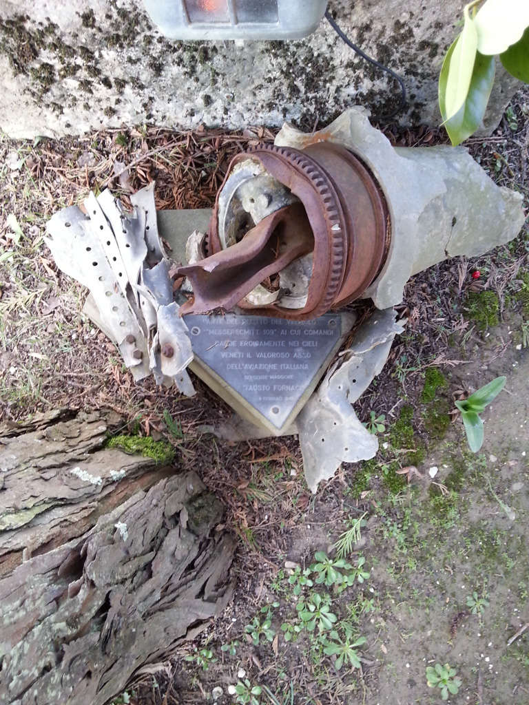 Parte del motore del velivolo Messerscmith 109 ai cui comandi cadde eroicamente nei cieli veneti il valoroso asso dell'aviazione italiana sergente maggiore Fausto Fornaci