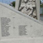 Sulle lastre di marmo bianco posizionate sui lati della parte bassa del monumento sono incisi i nomi dei caduti. Sul fronte degli obelischi sono presenti i nomi dei caduti medagliati. Sul retro degli obelischi sono presenti le dediche.