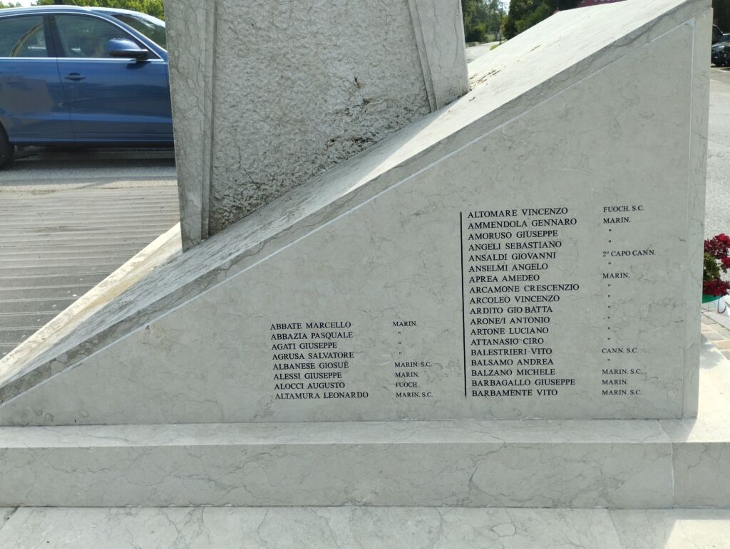 TORP. M. / CARRARO ANTONIO MARIN. / CARUSO FRANCESCO “ / CASTELLANO GENNARO " / CAVALIERI GIUSEPPE “ / COSTA / CECCHINI LIBERO OP. MIL. / CHA' GIUSEPPE MARIN. / CHIARANTONI MICHELE “ / CHINCA ARMANDO “ / CHIODELLI GIUSEPPE “ / CILIO ANTONINO “ / CINELLI GUERRINO " / COLACI MICHELE “