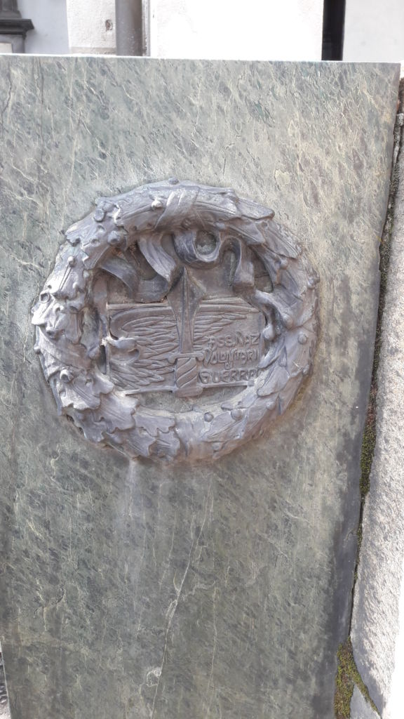 Il piccolo monumento situato nel cimitero di Como rappresenta un soldato morente sostenuto da due compagni d’arme. E’ dedicato a Gino Negretti, morto per la patria.