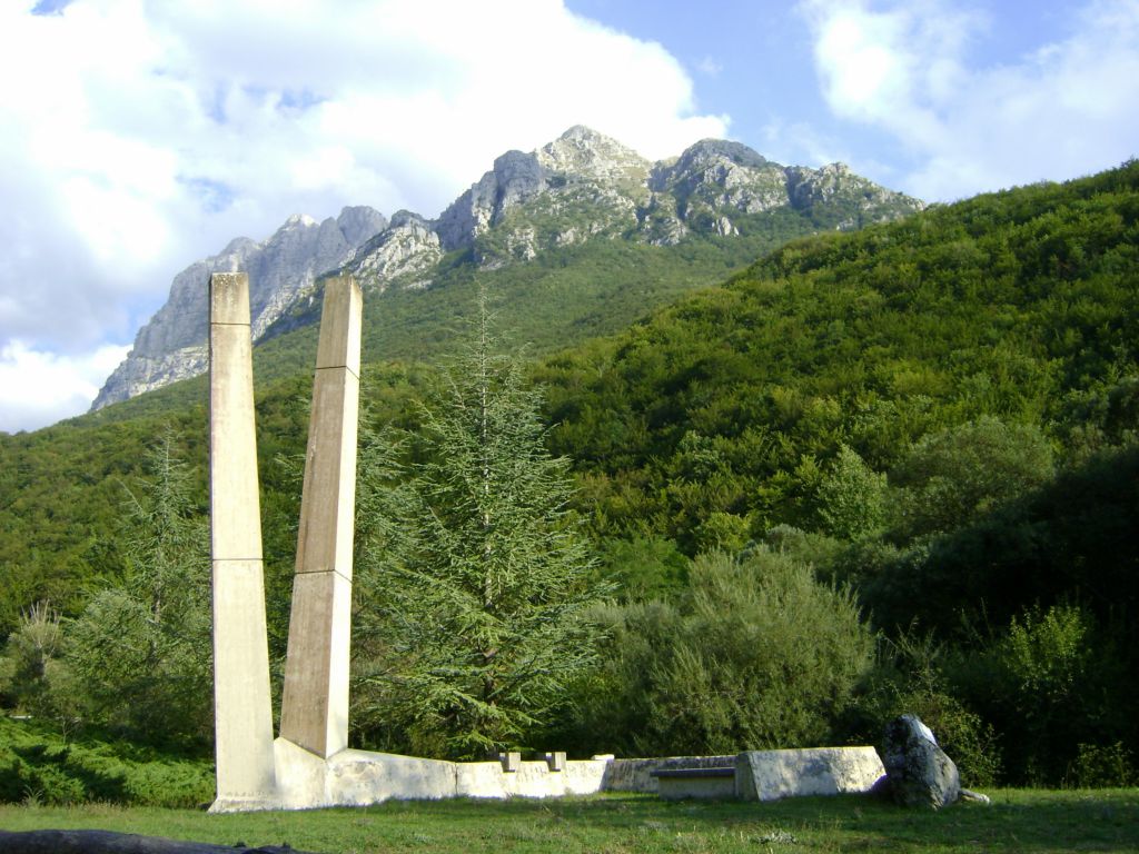 - Pietra per il cippo (masso). Marmo per la lastra. Cemento per la struttura retrostante il cippo, per il muretto e per la panchina.