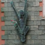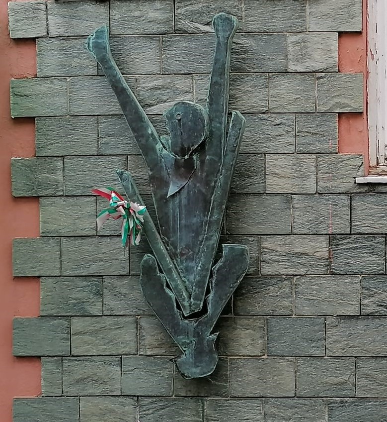 Monumento costituito da una scultura bronzea murale sovrastata da una lastra in marmo con scritta dedicatoria.