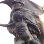 Dietro all'alpino che regge tra le mani il bambino, dei rami con delle spine, che richiamano la corona spinata di Gesù, e simboleggiano il valoroso sacrificio compiuto dai combattenti nelle due Grandi guerre.