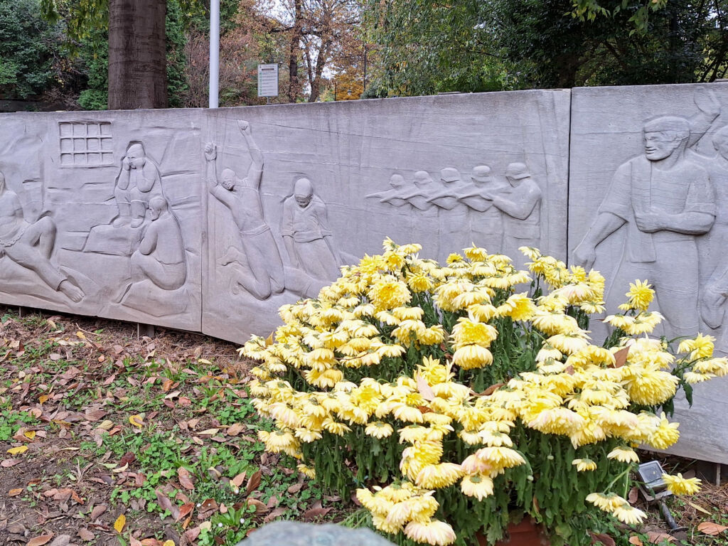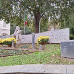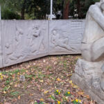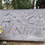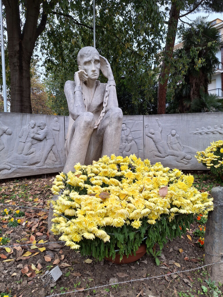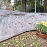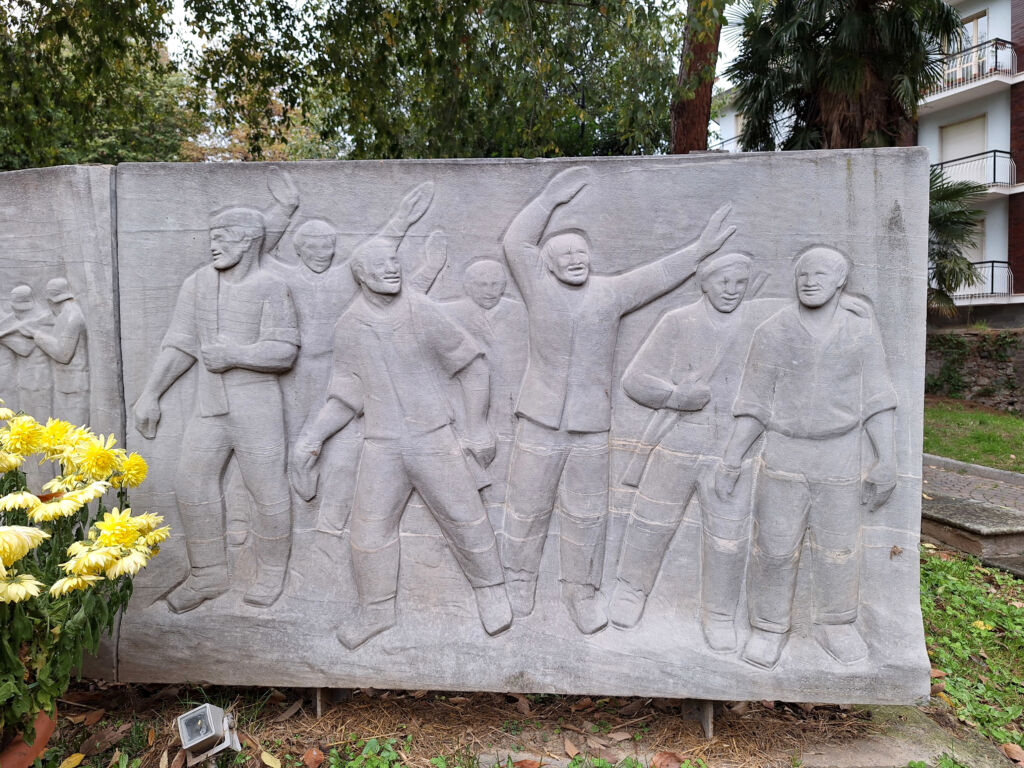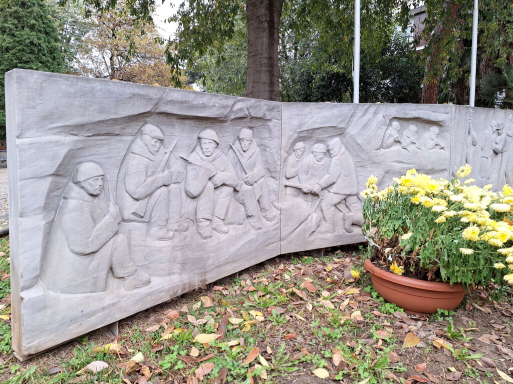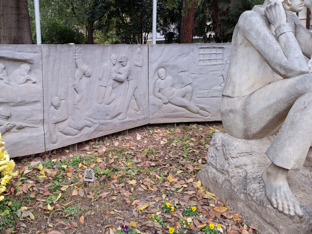 - Statua e bassorilievo in pietra, lastre metalliche, filo spinato.
