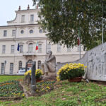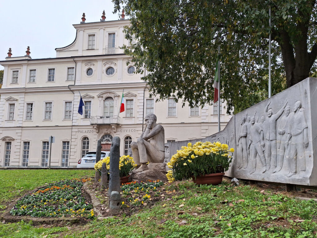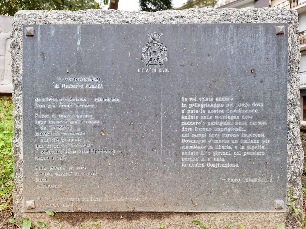 - Sulla lastra metallica con le due frasi è presente in alto lo stemma del Comune di Rivoli.