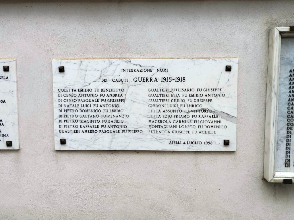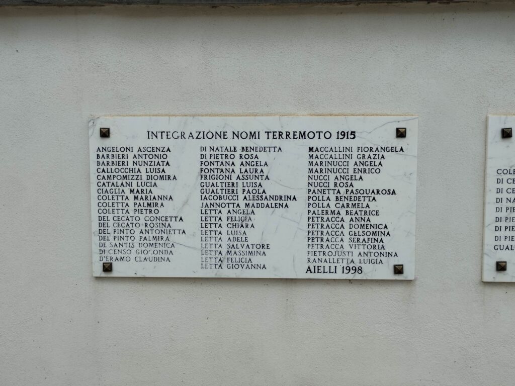 Nell’area del Monumento è anche posta una lastra che riporta nomi di aiellesi morti a causa del terribile terremoto che colpì il Fucino e la Marsica il 13 gennaio 1915.