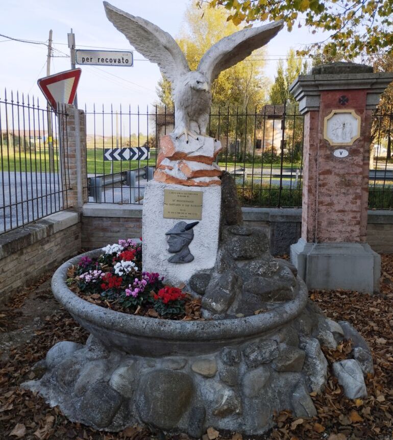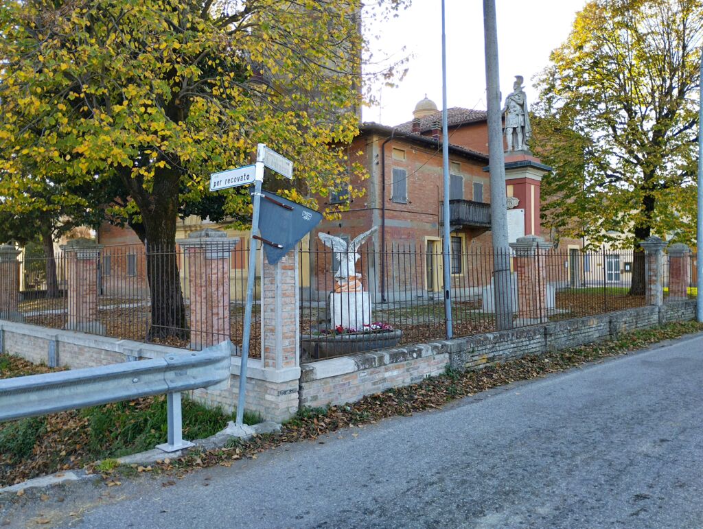 - All’interno del giardino antistante la chiesa parrocchiale di San Maurizio, vicino all’incrocio tra via F. Baracca e via per Recovato.