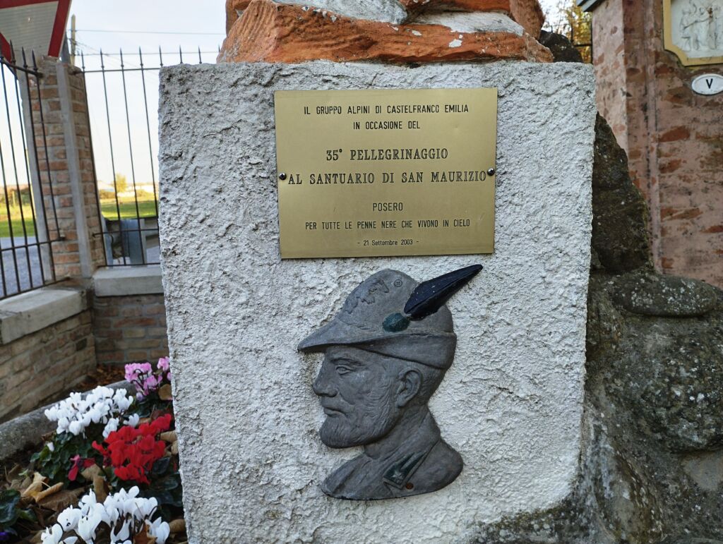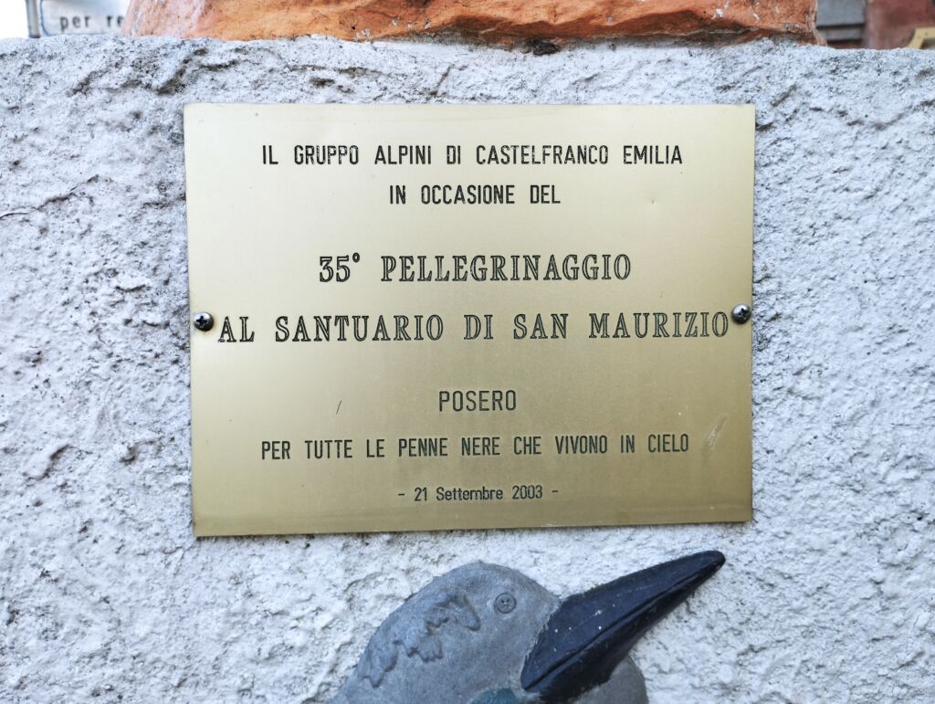 - Il Gruppo Alpini di Castelfranco Emilia inaugurò questa opera in occasione del trentacinquesimo pellegrinaggio al Santuario di S. Maurizio Martire che è Patrono del Corpo degli Alpini (decreto di Papa Pio XII del 19 luglio 1941).