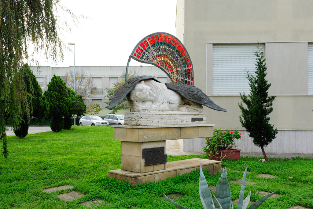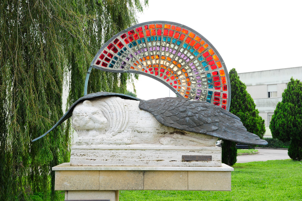 Monumento a ricordo dei Caduti del San Marco in tutte le guerre, costituito da un basamento a pianta rettangolare sul quale poggia una statua raffigurante un leone alato dormiente, sormontato da vetrata policroma a semicerchio.