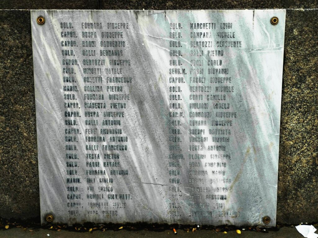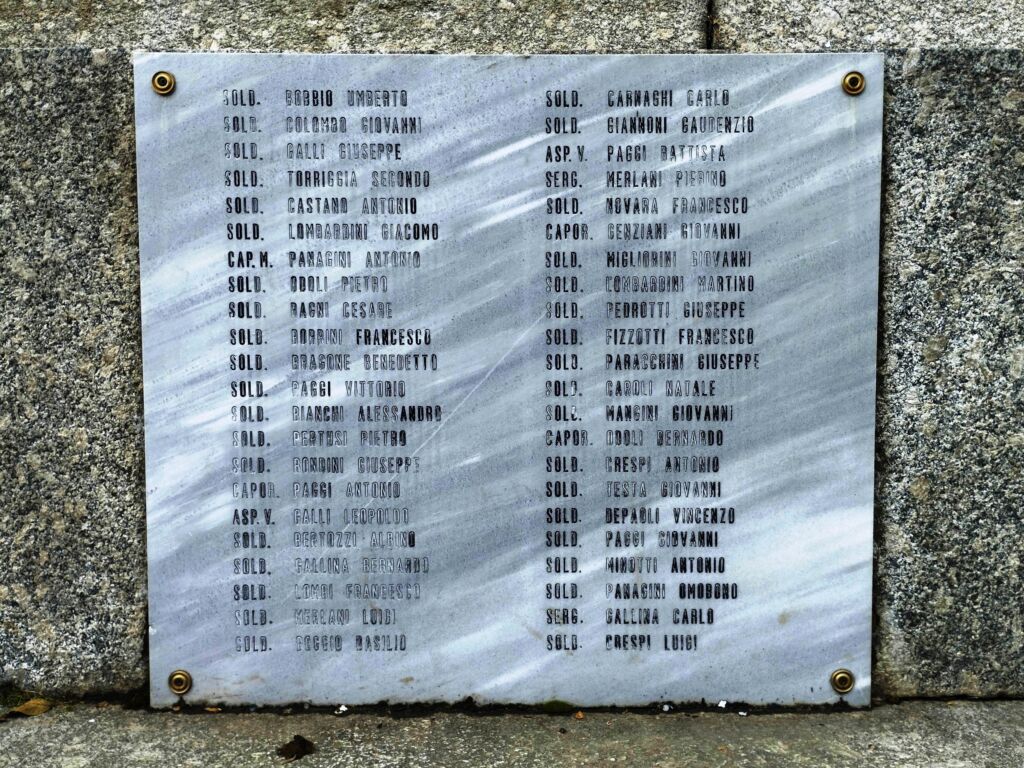 Caduti della Grande Guerra sulla lastra a sinistra nella parte destra del basamento:
