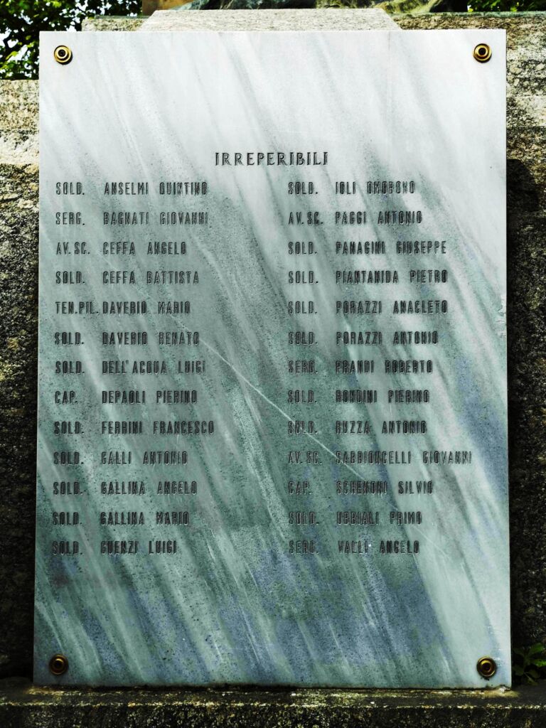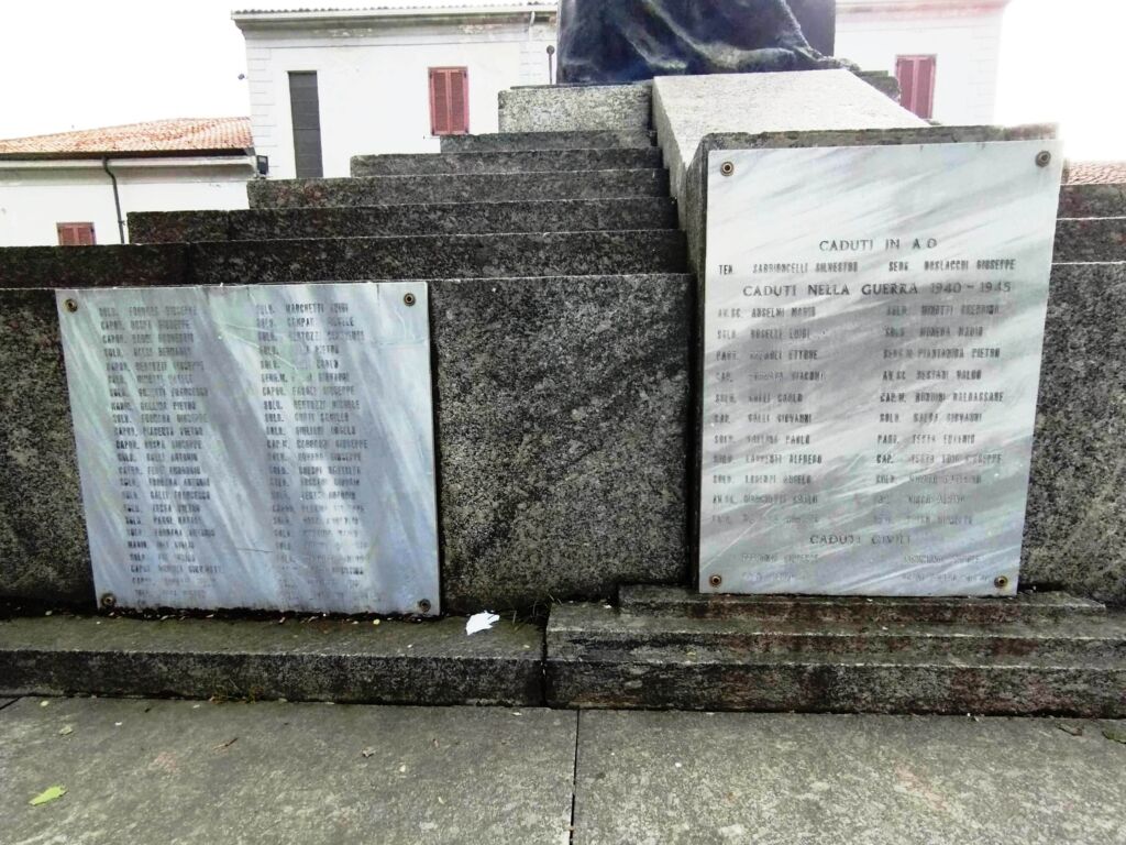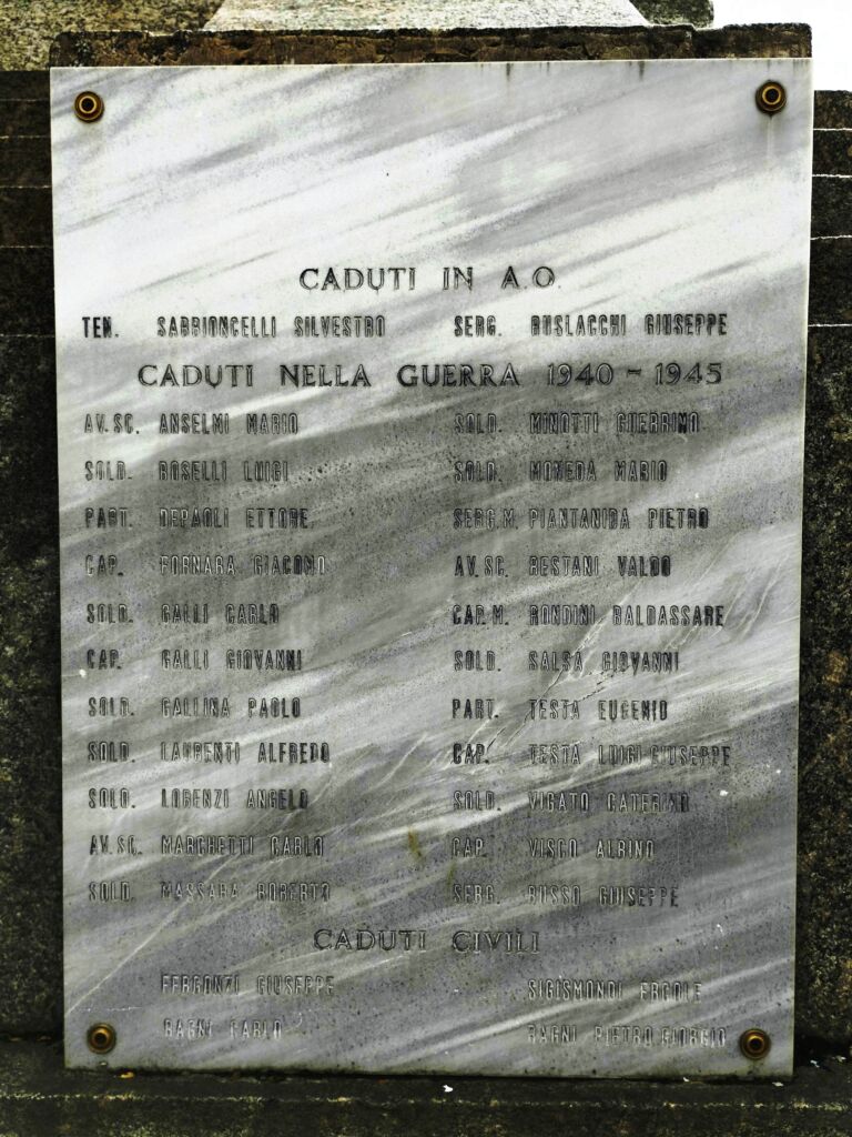 Caduti della seconda guerra mondiale e in A.O. sulla lastra a destra nella parte sinistra del basamento: