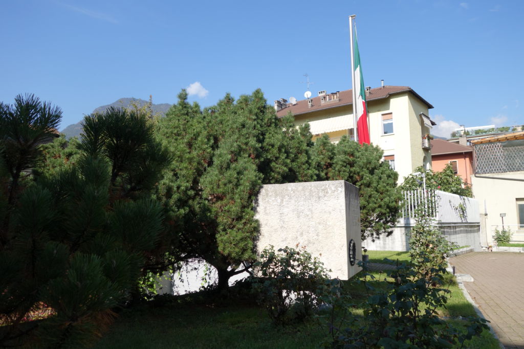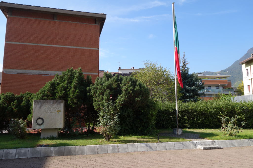 Monumento dedicato ai 182 Caduti della Legione Carabinieri Trentino Alto Adige; il monumento è un cubo marmoreo sorretto da pilastrino; sul fronte, in basso a destra, è decorato da una corona d’alloro.