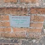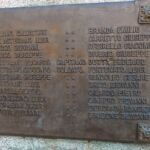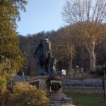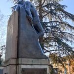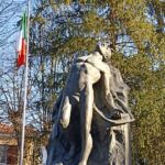 basamento in pietra statua in bronzo lastre in marmo ed ottone