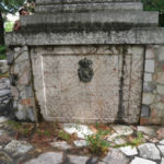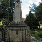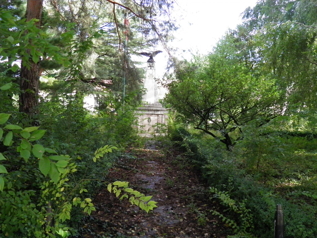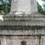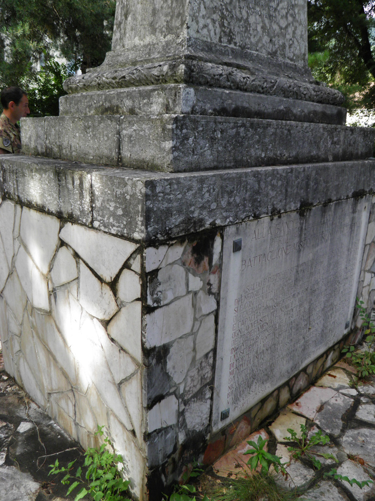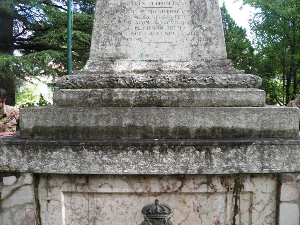 - Obelisco di pietra grigia; piedistallo in muratura; lapide in marmo rosa.