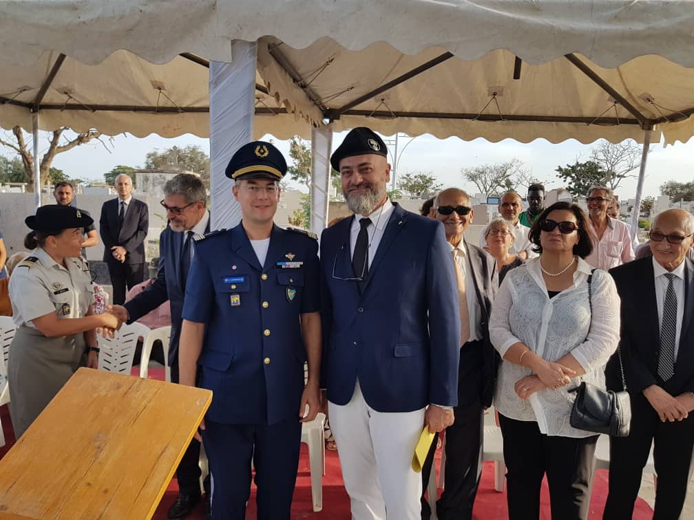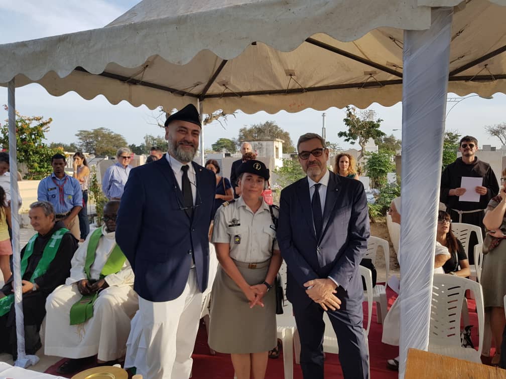 Una cerimonia toccante e commovente , iniziata con l'alzabandiera, la resa degli onori militari, l'inaugurazione di una lastra a memoria del Centenario e la deposizione di una corona di alloro, durante la quale, proprio tutti, hanno intonato il Canto degli Italiani, coadiuvati dalla Corale della Chiesa dei Martiri dell'Uganda, che per l'occasione hanno imparato a cantare in italiano.