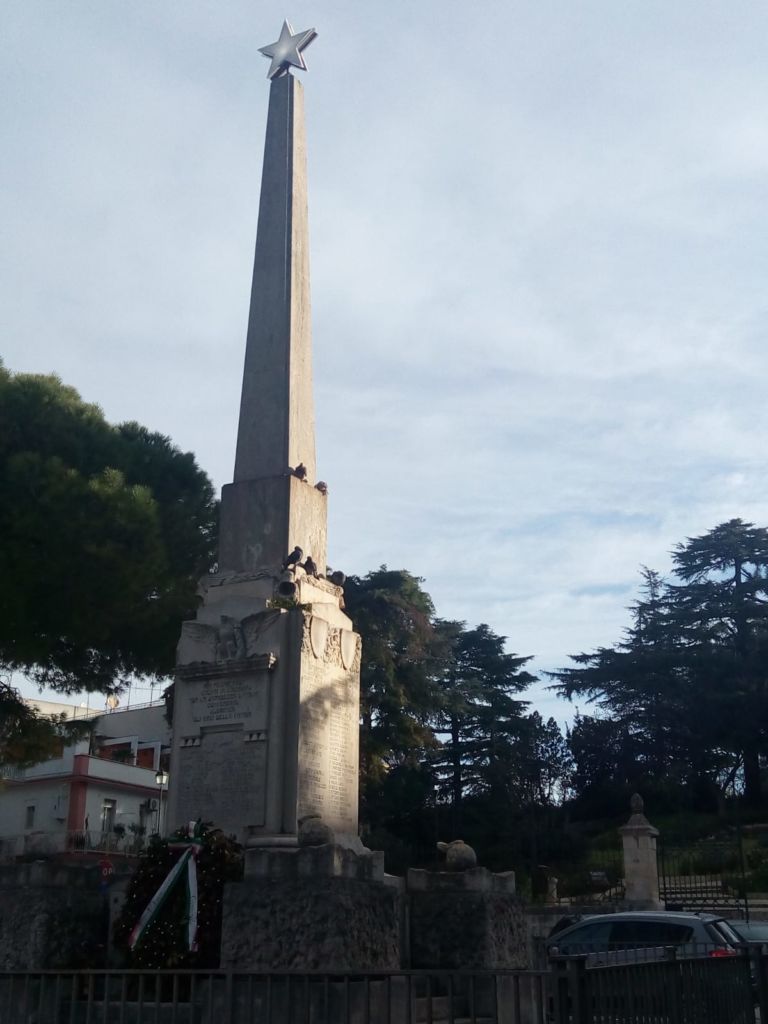 - UN'AQUILA SUL LATO NORD E DUE SCUDI SUI LATI EST-OVEST. UNA STELLA SULLA SOMMITA' DEL MONUMENTO.