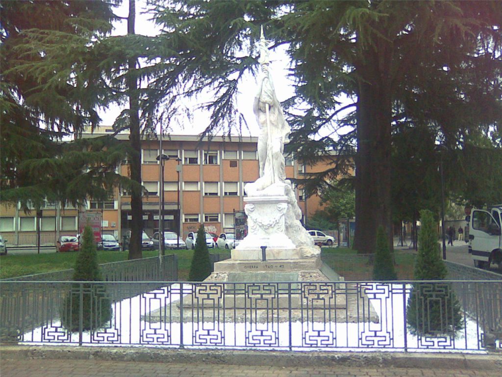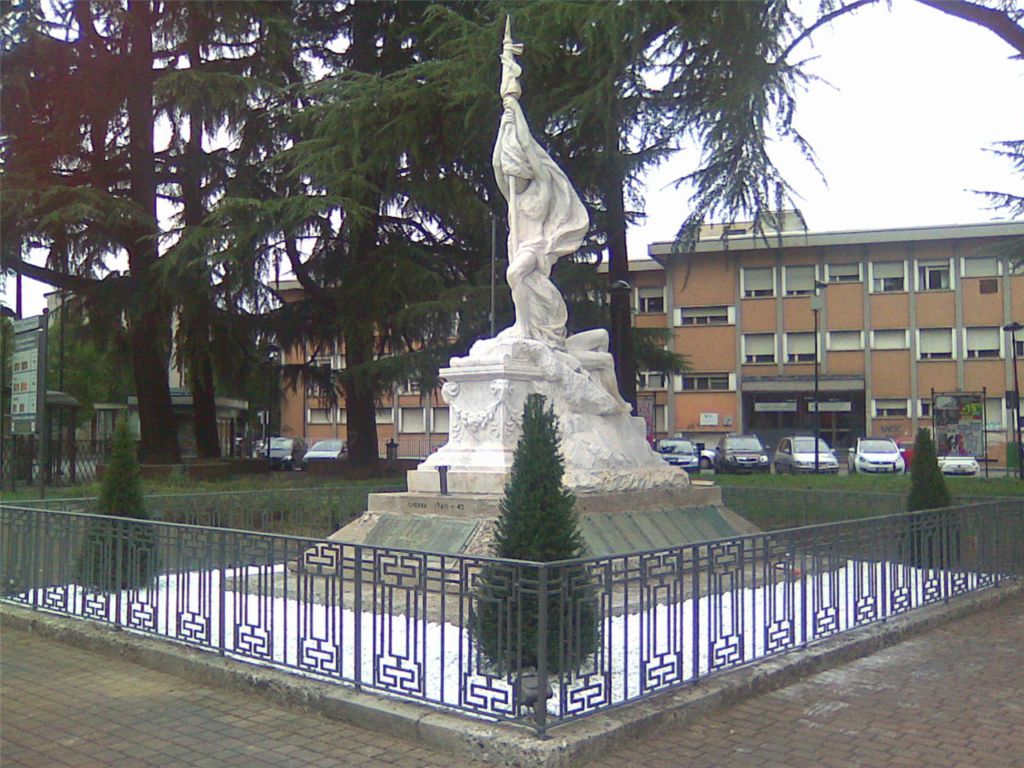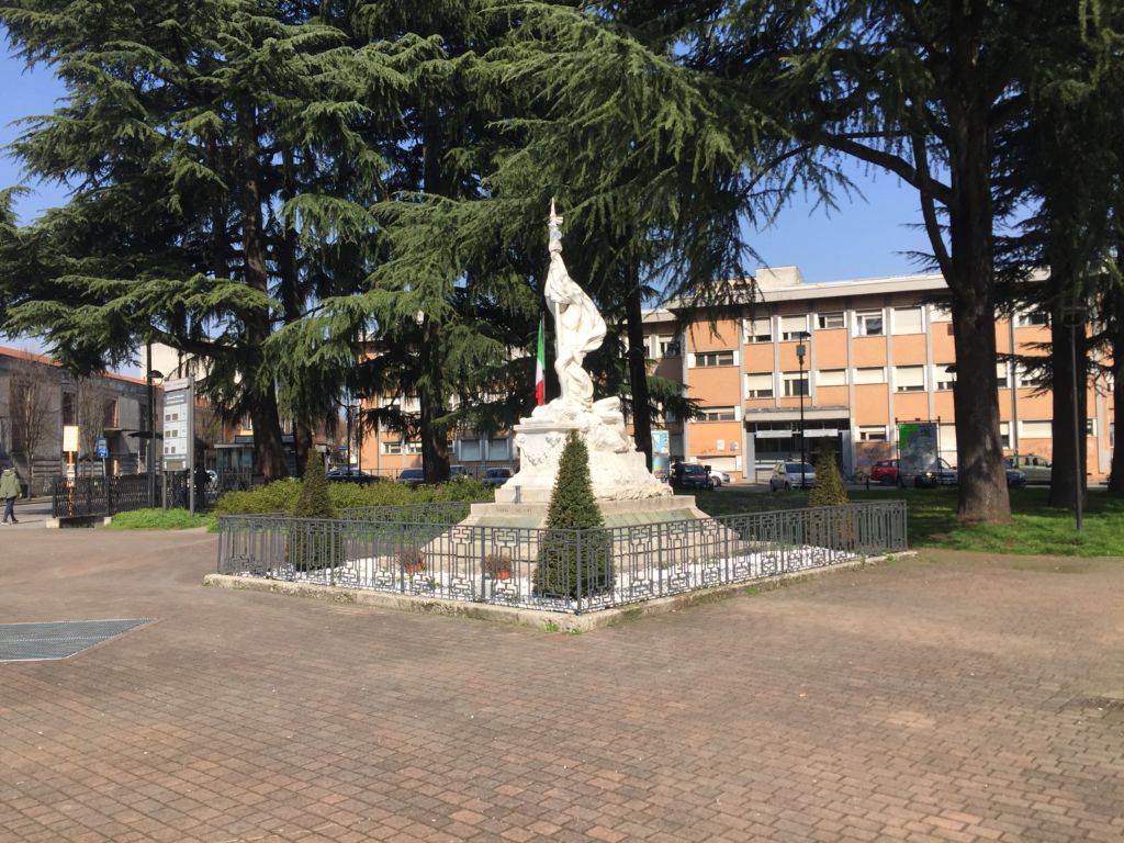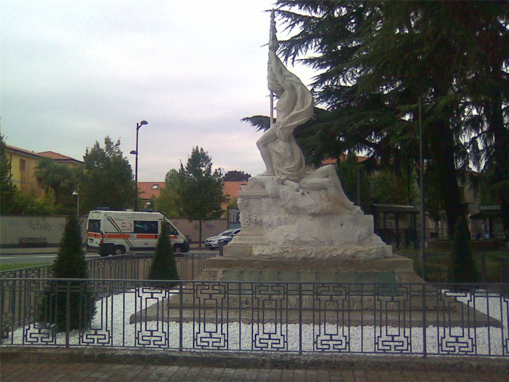 Il monumento è stato inaugurato il 12 novembre 1922. La scultura in marmo nasce dal bozzetto di Alterige Giorgi, mentre il progetto del basamento è dell'arch. Ilario Arrigoni. Dal 2004 si trova in una posizione più arretrata rispetto all'asse della strada di via Vittorio Veneto, intitolata alla vittoria che per l'Italia segnò la fine della Grande Guerra.